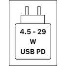 • The required output of a suitable charging device is 4.5W minimum and 29W maximum.